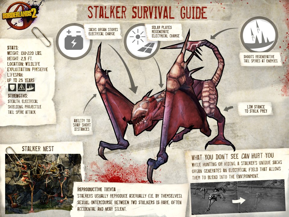 For the intro log this month, the Door will be bringing in Stalkers from the Borderlands game series! Stalkers are four legged monsters with an array of claws, teeth, and prehensile tails that can fire large spikes at you from quite a distance away.